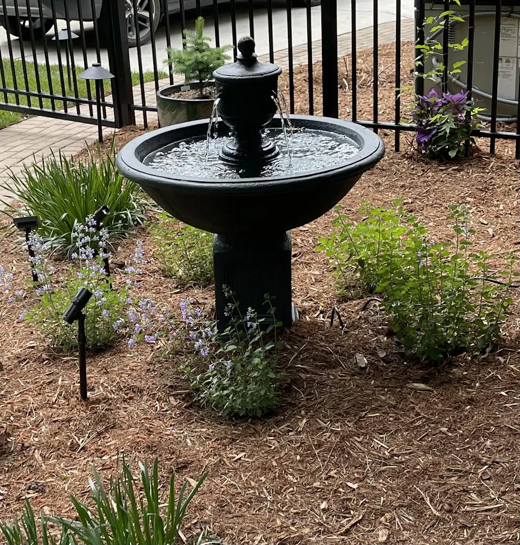 The Rochefort Fountain adds a beautiful sound of cascading water to the garden. Adding water with a fountain promotes relaxation, calming the mind, and easing the senses. Fountains deepen engagement with nature, creating a cooling destination for birds, wildlife, and people.